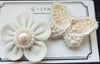 レザーのお花とスパンコール蝶々のブローチ2個セット