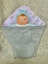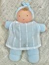 【お届け内容】ウォルドルフ人形「ヴェロアの赤ちゃん(水色)」1体とお布団完成品。