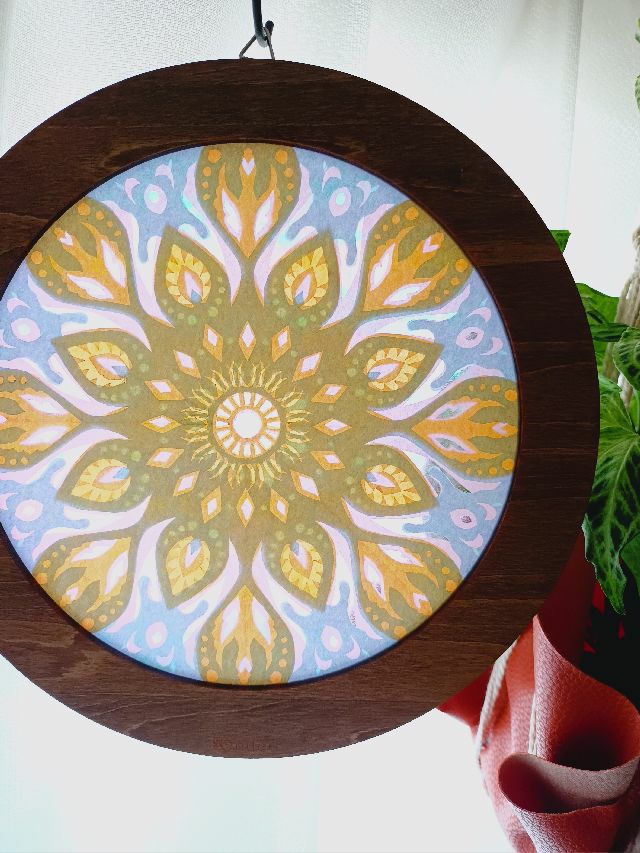 ローズウィンドウ切り絵「Sleeping Swan」ヨガのポーズをイメージしたデザインです。光が差し込むときれいです。窓辺に飾ってお楽しみください。