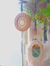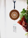 ローズウィンドウがついているので、窓辺に吊るすとステンドグラスのようにきれいです。ウィンドウチャイムが風にゆられて優しい音を奏でます。