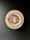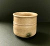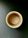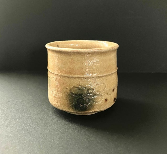黄瀬戸は桃山時代に焼かれた美濃のやきもので、時代的にいうと、志野や織部の兄貴分に当たります。松村さんのこのぐい呑みは、当時の黄瀬戸の茶碗を下敷きにつくられています。ただ、元々黄瀬戸用につくられた茶碗はなく、伝来する黄瀬戸茶碗のほとんどが向付を茶碗に見立てたもの。この半筒形の気品のある造形には逆に他の茶碗にはない魅力があって、オーソドクスな黄瀬戸の代表格となっています。とりわけ、松村さんの黄瀬戸の焼きなりは桃山陶以上に桃山的で、本作においても濃い油揚肌やタンパン(銅緑系の釉薬)と鉄絵で描かれた文様が作品の存在感をさらに高めています。品を感じさせるお酒の御供にぴったりです。