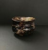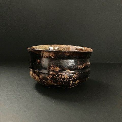 五角形の高台といい、亀甲形に削られた腰の部分といい、「御所丸茶碗」の特異なつくりをかなり意識した造形になっているが、これが黒狐手をまとうとまったく別の新しい様式が生まれたようにみえるから不思議だ。ここにお酒の揺らぎが入ると、色目が交差して、心地よい酔いと空想を誘う。
