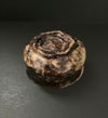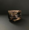 桃山スタイルを現代に蘇らせるだけでなく、それを元に様々な造形的挑戦をするのがこの作家の醍醐味。「黒狐手」は、黄瀬戸と瀬戸黒の技法から西岡さんが独自に考案した技法。黒と黄色が入り混じる器肌が黒狐の毛並みのようにみえるのでそう呼ばれる。