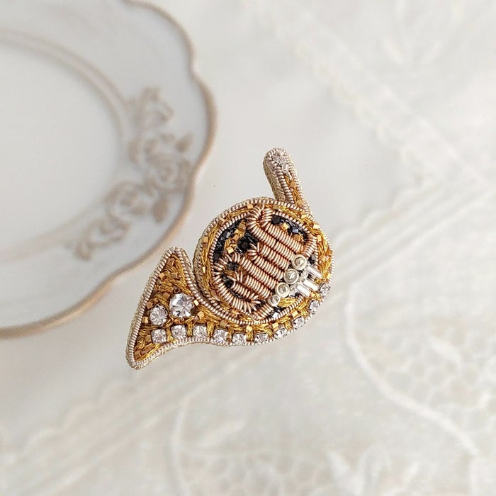 この身に着けやすい大きさで、ここまで細工が細かく、デザインも限りなく美しいのは手嶋先生ならでは。高さの厚みもしっかりあって、サイドからは切りっぱなしではなく銀の美しいコードが縁取りされているのも高級感があります。おススメですよ!