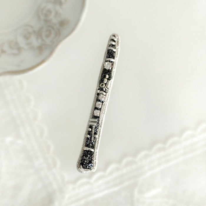 クラリネットの造形の魅力は、やはり複雑にたくさんのキーがついているところだと思います。ビジュー・ダイヤレーン・竹ビーズ・シリンダービーズ・スペーサービーズ…など多種類のビーズを使用して縦に横に渡るキーを表現しました。