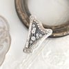 この身に着けやすい大きさで、ここまで細工が細かく、デザインも限りなく美しいのは手嶋先生ならでは。高さの厚みもしっかりあって、サイドからは切りっぱなしではなく銀の美しいコードが縁取りされているのも高級感があります。おススメですよ!