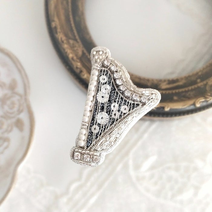 曲線美が優雅なハープブローチです。弦は細いワイヤーを張って繊細に仕上げました。