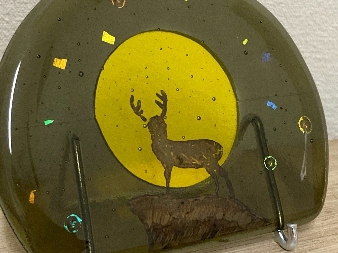 ステンドグラス作家・工芸家「創作ステンドグラス工房・ビッグハウス」の大家 伸介さん製作の鹿デザインの半円パネルです。