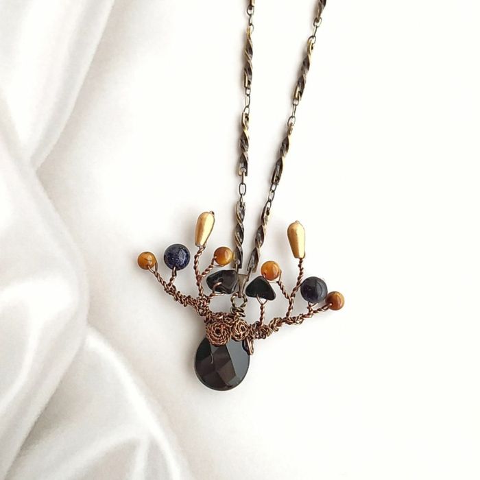 ワイヤージュエリーのペンダント「きらめきの鹿の角シリーズ~オニキス~」
