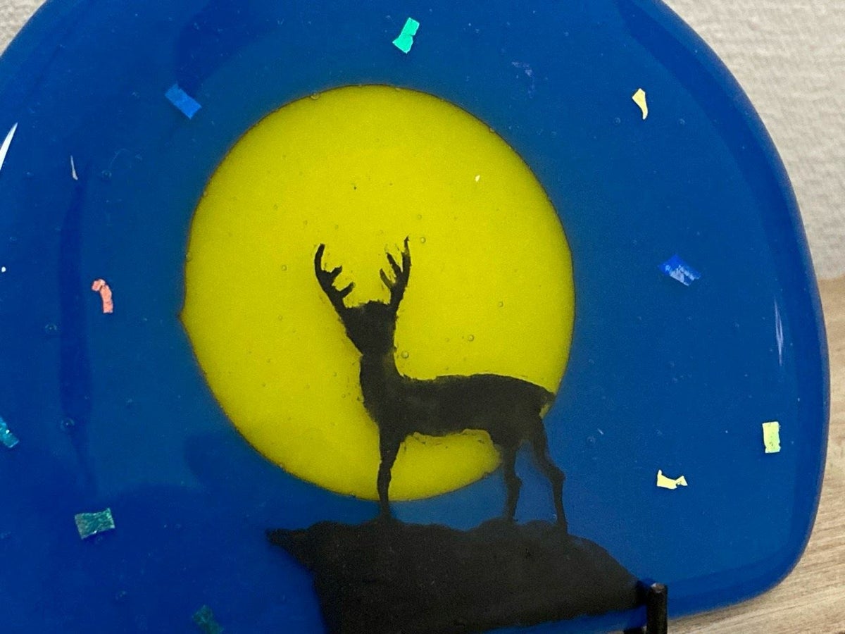 他の画像を見る 奈良の鹿・半円パネル台付「振り向き鹿・金青」 販売価格 ¥ 3,500 税込 サイズ:w9×d5×h8㎝ 販売期間 2024/12/06 9:00 〜 カートに入れる お気に入りに登録する
